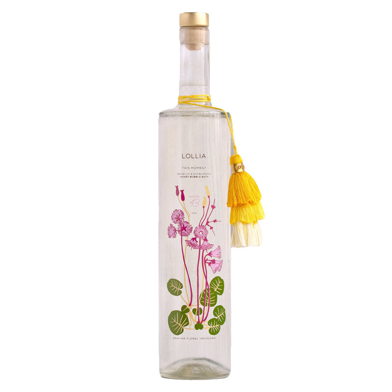Soak in the moment, enveloped in a tranquil tub of tiny chattering bubbles. Infused with uplifting notes of Water Lily & Sun Blossoms, Lollia's signature bubble bath formula wraps skin in a luxurious, moisture-rich blend of Avocado & Olive Fruit Oils to sublimely soften as it soothes. A beautiful invitation to let your senses wander and simply be.