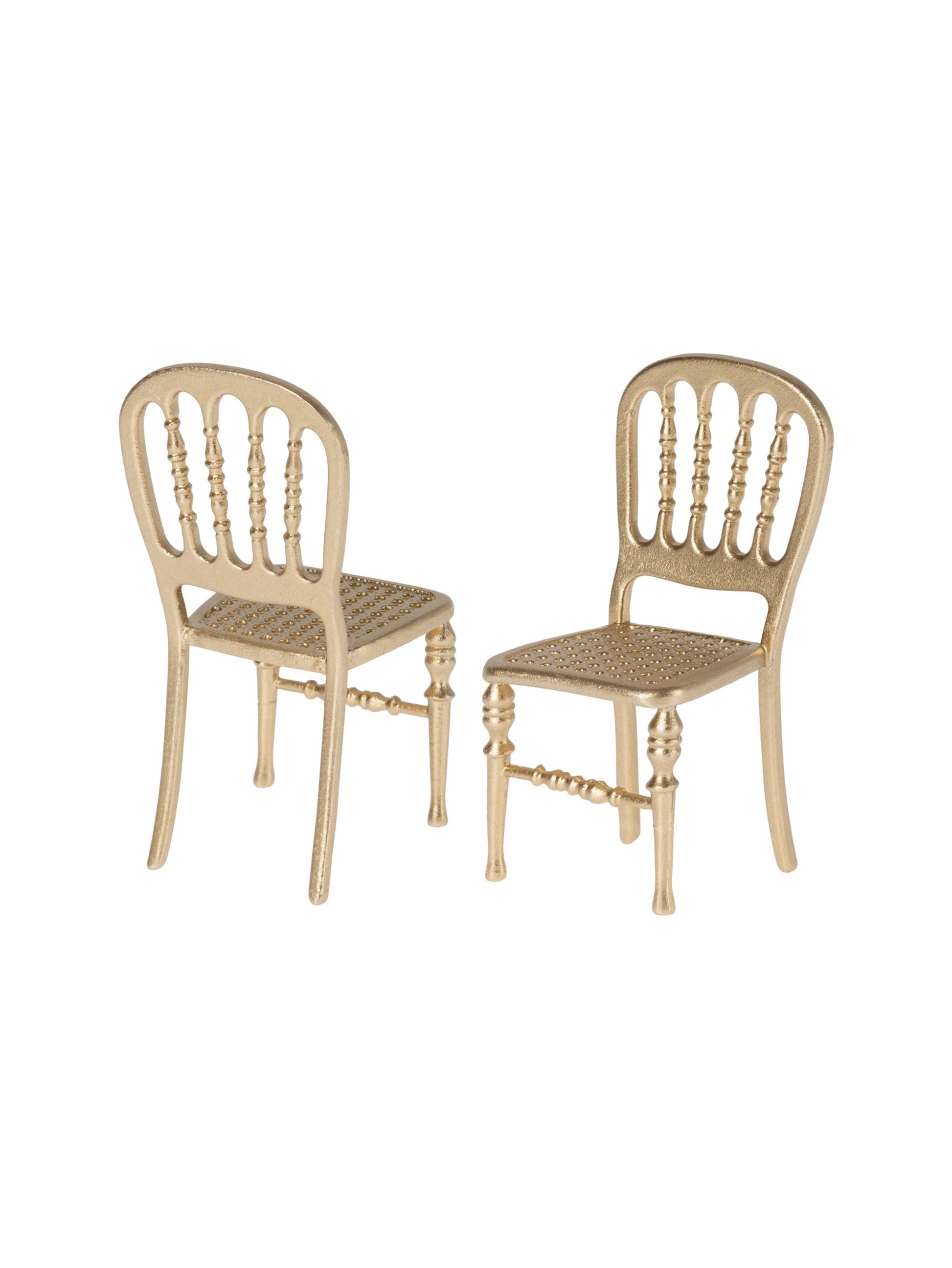 A formal dining chair that fits perfectly around the Maileg dining table for mouse sized entertaining and socializing.
