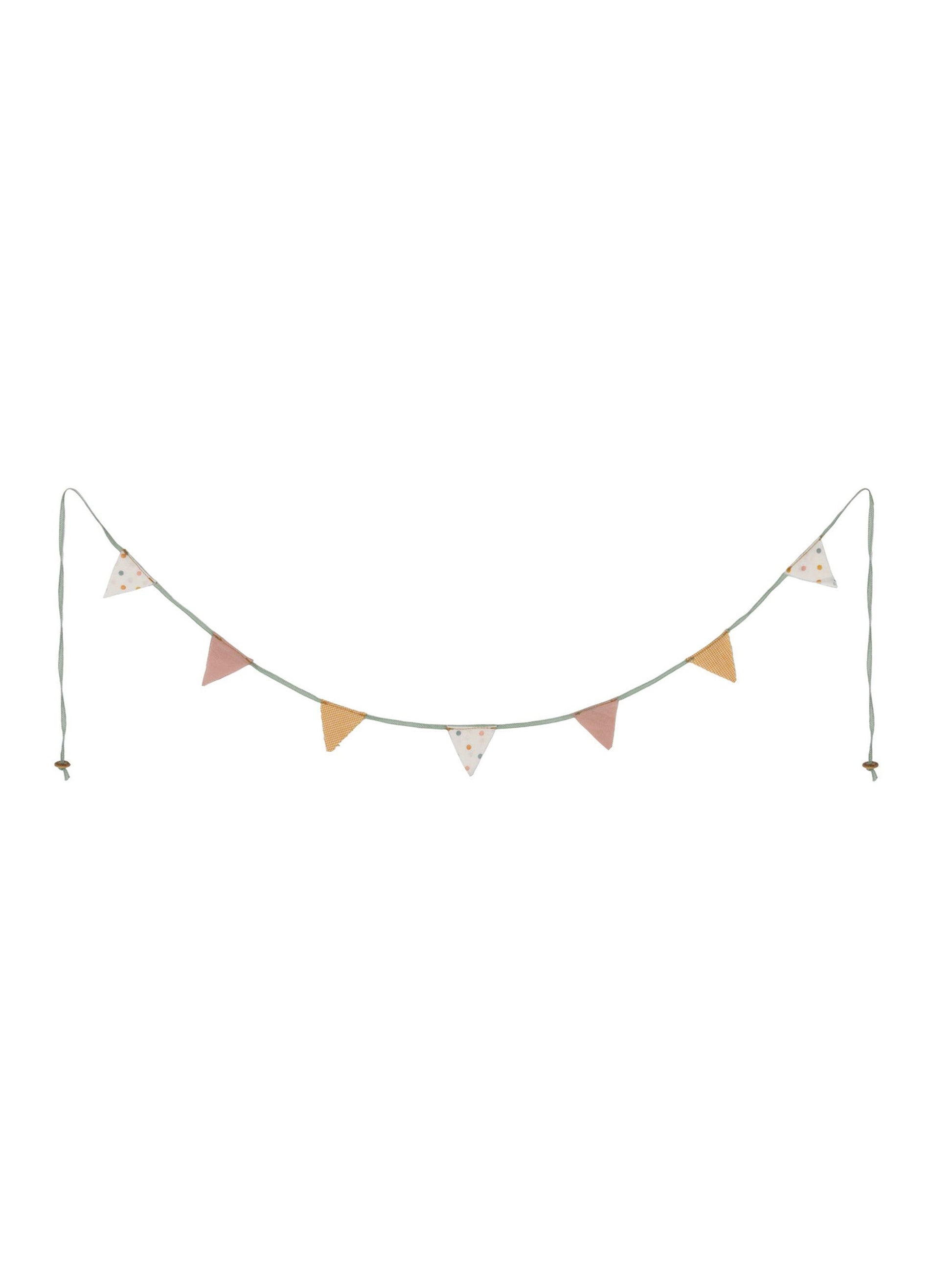 This mini garland is made to decorate wherever you find it suitable in your Maileg House of Miniature. Put it in the living room or on the terrace. You decide! It has 7 fabric flags.
